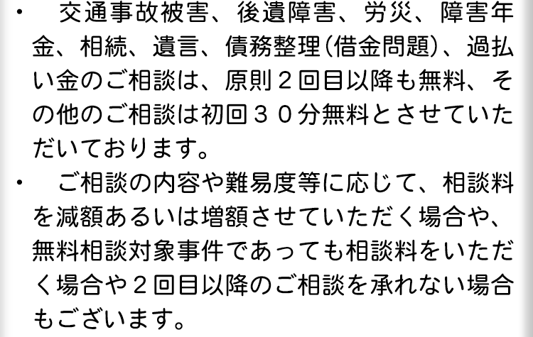 また、相談時間も30分程度と短く、その場で依頼することも原則できないので、簡単なアドバイスをもらう程度で終わるのが通常です。