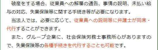 検索するときは、「法人・会社」と、「破産・倒産・廃業」、「弁護士、地域名」等のキーワードを組み合わせるのがよいでしょう。