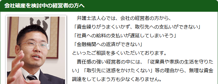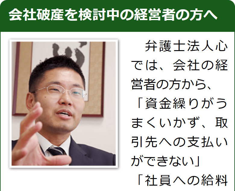後で述べるように知人に紹介してもらう方法もありますが、破産は他の人に相談しづらい内容ですし、同業者や取引先に相談すると、そこから風評が広がって取り付け騒ぎになることもあります。